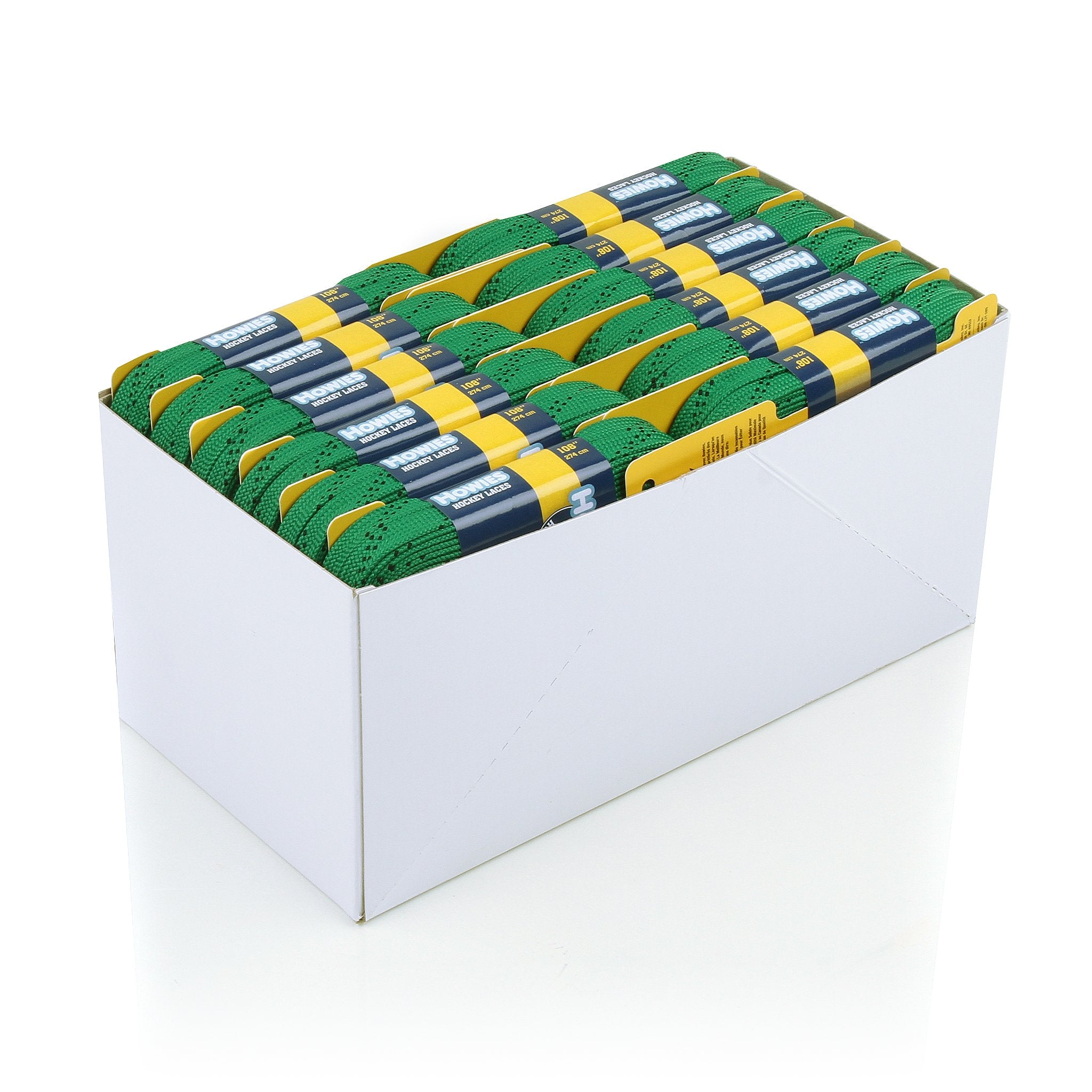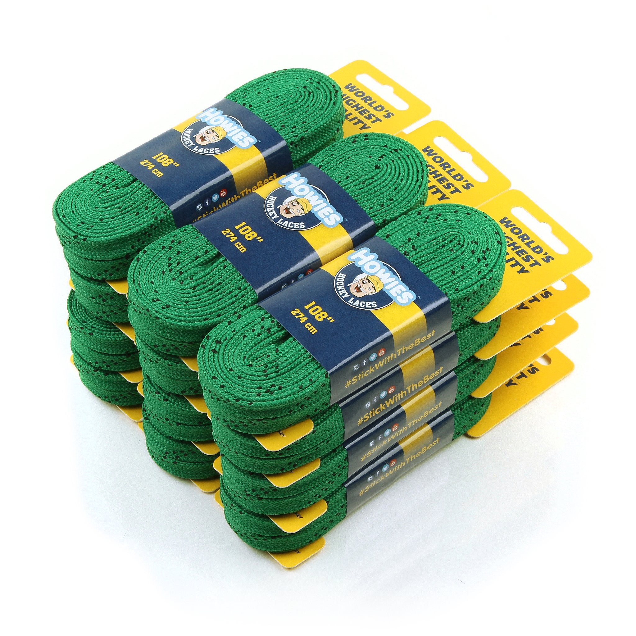 Most players lace 'em up with classic white hockey skate laces, a few skaters go with the "Ovie yellow", you lace up with green skate laces because you want people to remember you.  Our green cloth hockey skate laces are made from super-strong, tightly woven polyester yarns.  When tying up in freezing -5 degree on the pond, you'll appreciate our  unbreakable molded tips, ensuring an easy feed through your eyelet.