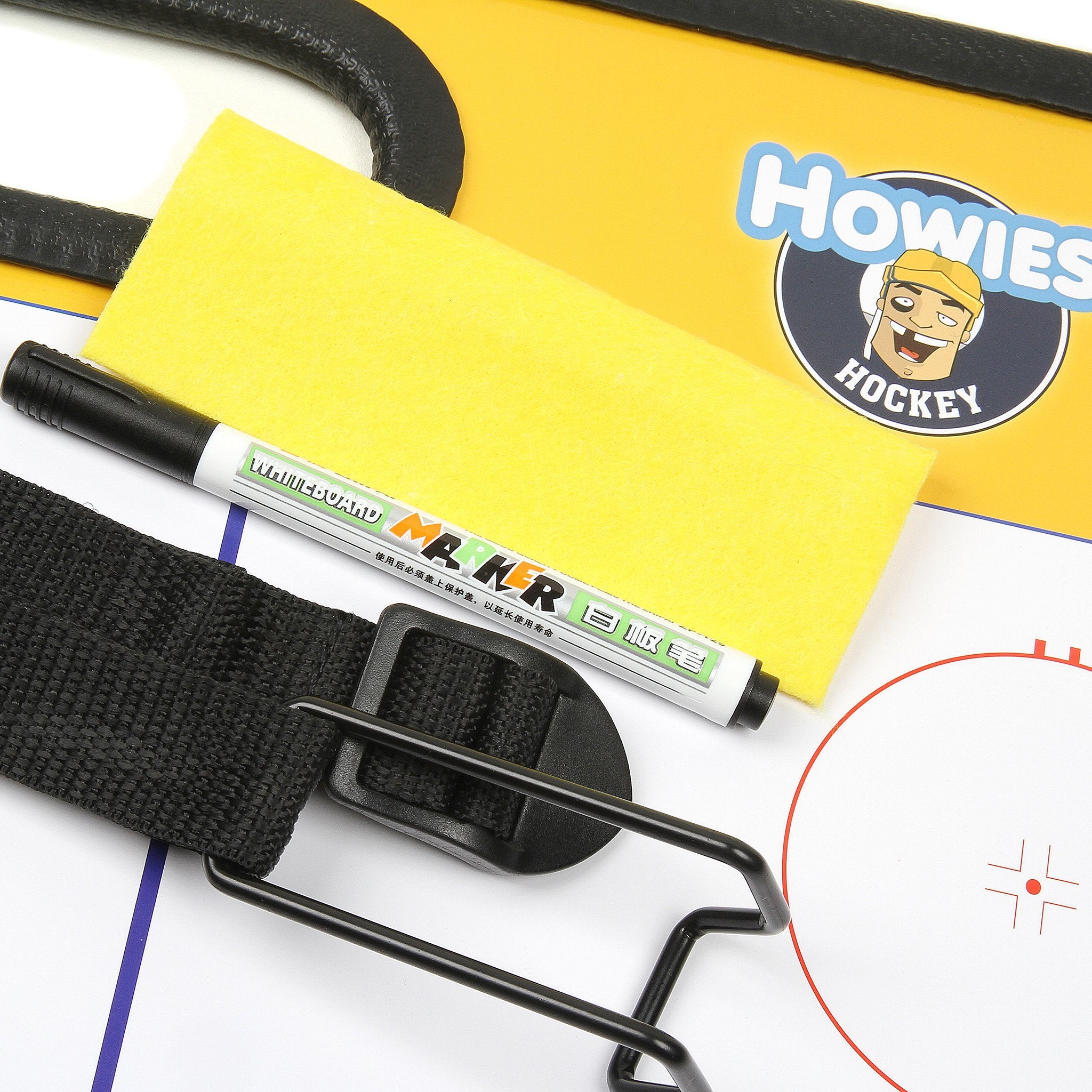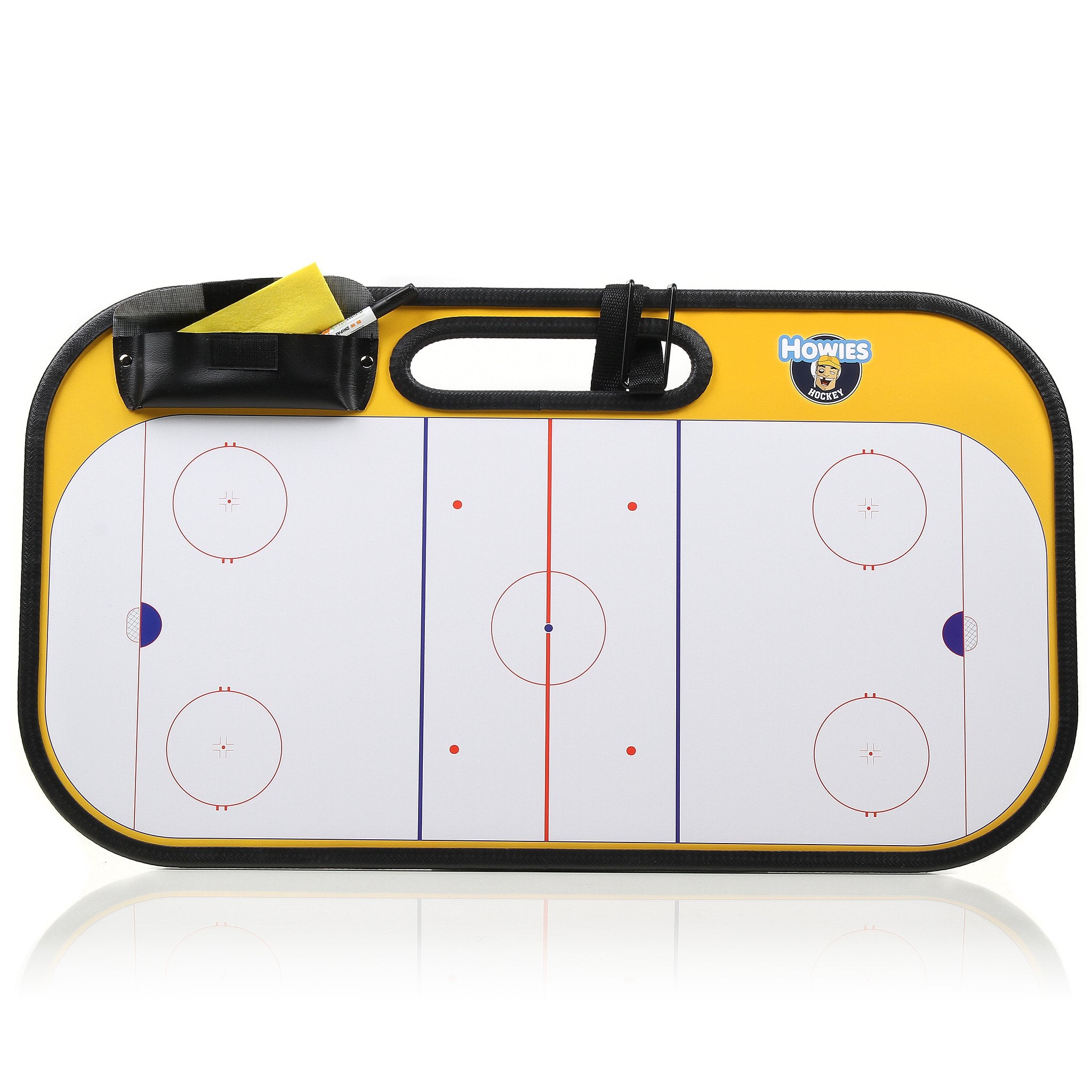 Some people dream of sugarplums – Coaches dream in x’s and o’s. From scheming up forechecks to drawing up an ironclad defense, the Howies Hockey Coaches Board helps those dreams come to life. Howies Coaches Board comes with a marker, textile eraser, and hanging strap to make sure your board can go high on the glass for the team to see. The perfect board for you or the coach in your life.
