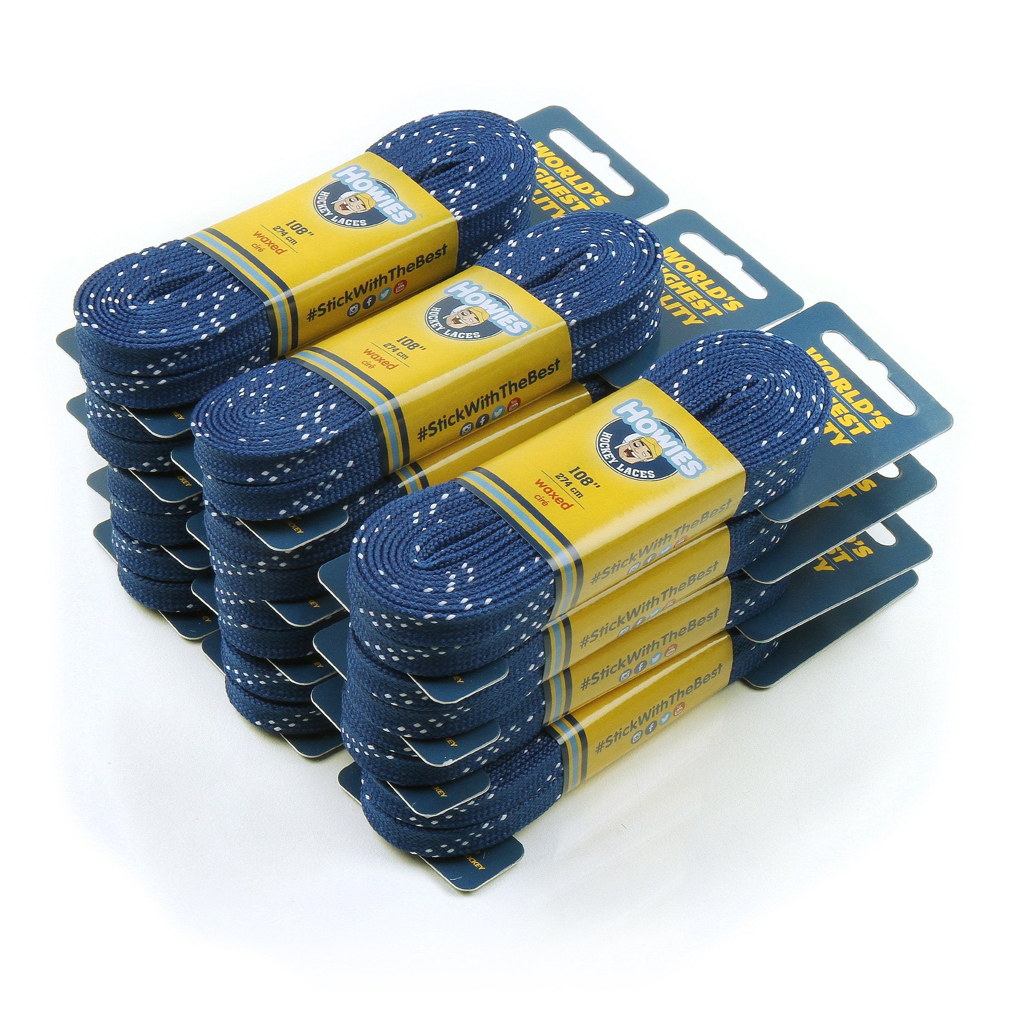 When lacing up with wax laces, most people would use the white, black or yellow. However, you want to stand out of the crowd, you want people to remember you. This is why you chose Howies Hockey royal blue wax laces. Our laces provide the perfect amount of friction so they won't slip; they also allow for that perfect feeling on your foot all the time. You'll love the molded tips and super strong threading when you're lacing up time and time again.
